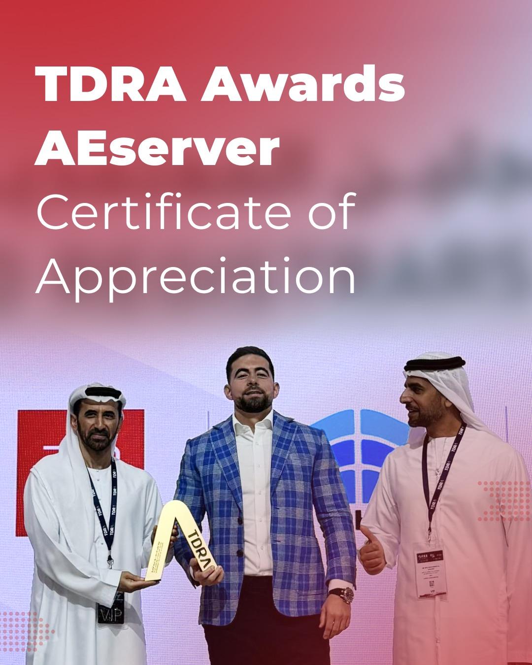 At GITEX Global 2025, the General Director of TDRA awarded AEserver the Certificate of Appreciation for our efforts in providing the UAE with excellent domain service.